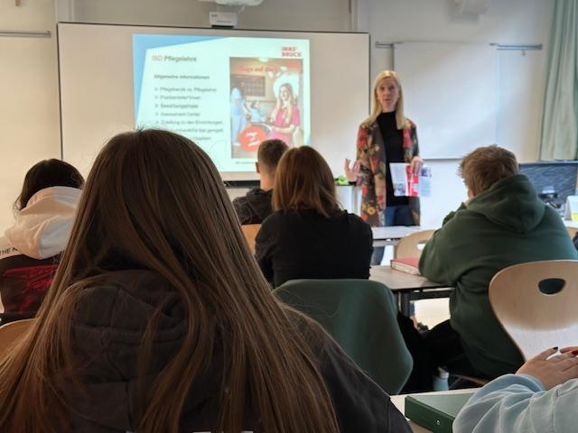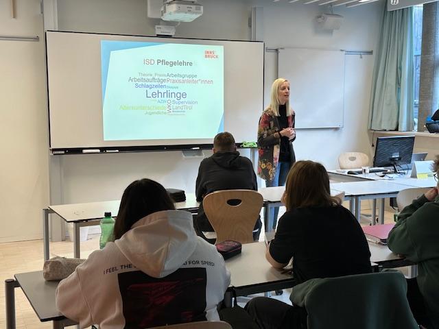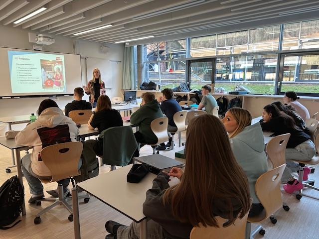 Am Montag, dem 24.02.25 informierte Frau Mag. Renate Kirchler, Bakk. von den Innsbrucker Sozialen Diensten die SchülerInnen der PTS Stubai über die Pflegelehre. In einem sehr interessanten Vortrag erhielten unsere Jugendlichen Einblicke in die Ausbildung und in die Unterschiede zwischen Pflegeassistenz und Pflegefachassistenz. Die zahlreichen Möglichkeiten an Aus-, Fort- und Weiterbildungen im Pflegebereich machen diese Lehre für junge Menschen attraktiv und interessant. Das Team der PTS Stubai bedankt sich herzlich bei Frau Mag. Renate Kirchler, Bakk. fürs Kommen.