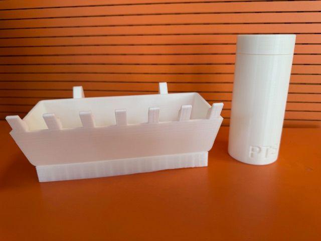 Sie planten und zeichneten Gegenstände mit dem Konstruktionsprogramm Fusion 360 eine Baggerschaufel, eine Dose mit Gewinde und einen prismatischen Körper, die anschließend mit dem 3 D-Drucker gefertigt wurden.