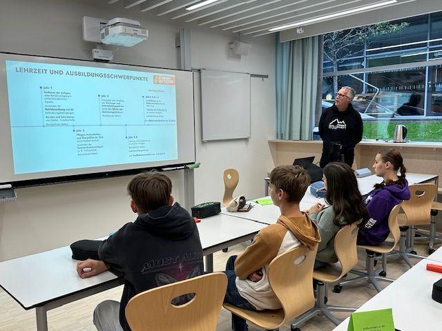 Am Dienstag, den 30.10.2025 freuten sich die Schüler über den Besuch von Sanjin Keskinovic und Daniel Mersch . Herr Mersch stellte den Beruf des Seilbahntechnikers und dessen Aufgaben vor, die vom Bedienen der Seilbahnanlagen bis zum Umsetzen von Wartungs- und Instandsetzungsplänen reichen. Eine Lehre als Sporteinzelhandelskaufmann/frau und eine Lehre als Sportgerätefachkraft kann am Stubaier Gletscher und im Intersport Okay absolviert werden. Diese interessanten Lehrberufe beinhalten Tätigkeiten wie das Anpassen von Sportgeräten an die Wünsche und Körpermaße der Kunden sowie den Verkauf von Sportartikeln und die Analyse von Störungen an Sportgeräten und deren Reparaturen. Das Team der PTS Stubai bedankt sich herzlich bei den beiden Vortragenden.